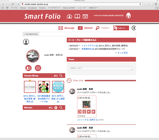 機能には「日記」「メッセージ」「コミュニティ作成」のほか、実習簿や学習指導案を閲覧できるように「ファイルアップロード」機能を備える。