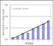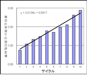 スケジューリングアプローチでデータを収集すると、精度の高い時系列データが大量に入手できるようになり、成績などの予測精度も飛躍的に高まった。「ドリル学習などの成果が可視化できるようになり(上図参照)、成績の低い子でも、日々の学習の積み重ねの様子と成績を自分で見ることで『やればできるようになる』と実感できるようになった」という。